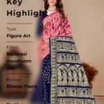 Work Type – The saree primarily featuring a combination of dual colour. Embrace a narrative of heritage and sacred grace with “Ramya Rasa”, a magnificent Banarasi silk saree that immortalizes epic tales in golden threads. This saree isn’t just attire – it’s a story draped in silk, where every motif echoes timeless devotion and royal elegance.
